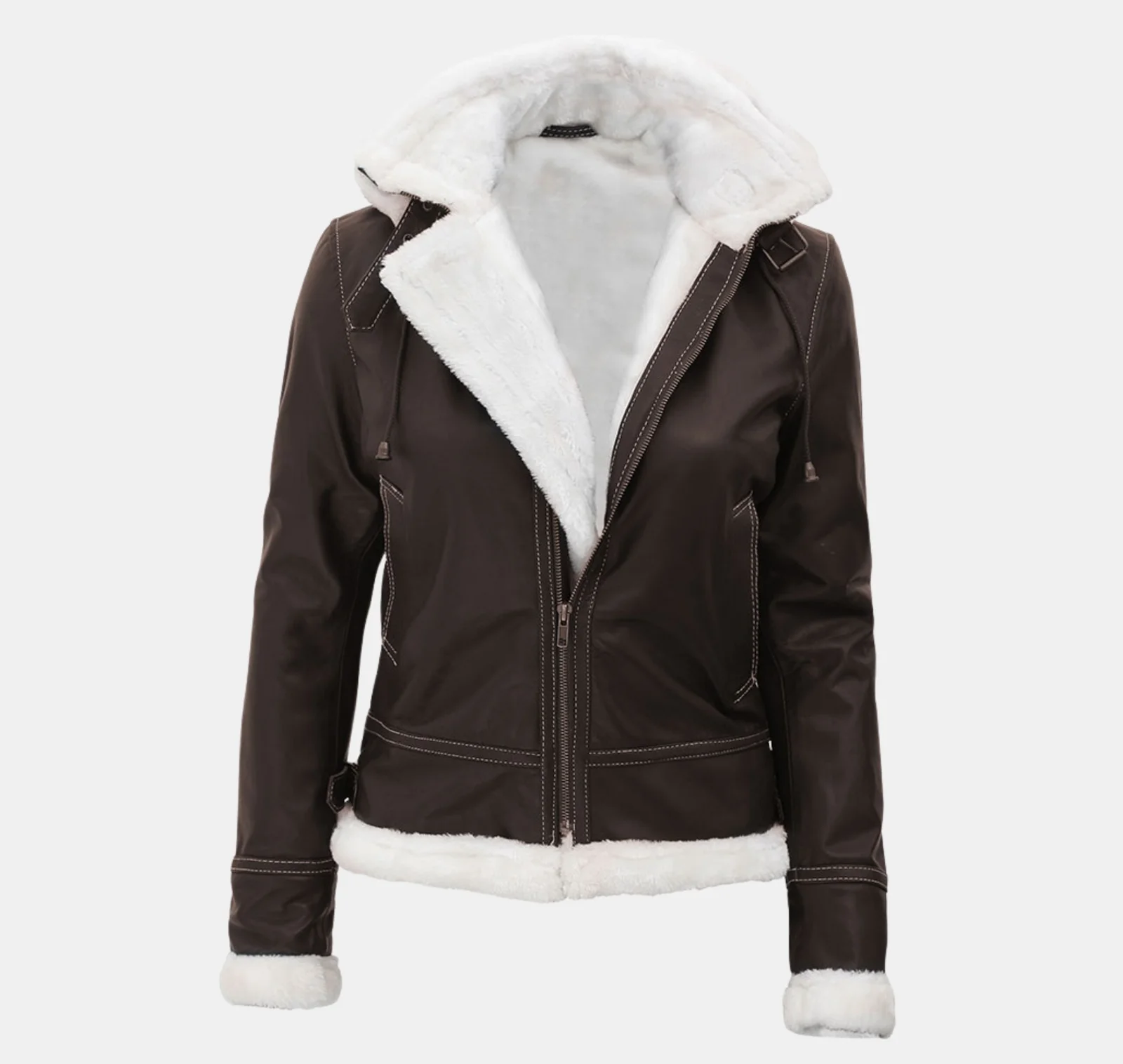 Arctic Bomber Women’s Fur-Lined Leather Jacket with Detachable Hood