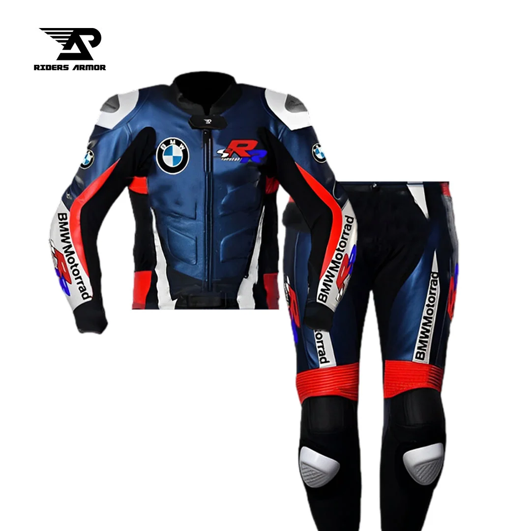 The Riders BMW Sport Track Leather Suit is crafted from high-quality, real leather made for motorbike suits. It includes CE-approved protection for the shoulders, elbows, and knees, with added foam padding to reduce crash impact. The sleeves are pre-curved for the best riding position, and the suit’s critical areas are dual and triple-stitched for extra durability. A YKK zipper securely closes the suit, and dual-density removable armors protect the shoulders, elbows, knees, and spine. Removable knee sliders and optional rubber padding provide extra safety, while an optional aerodynamic speed hump adds protection for the neck and backbone.