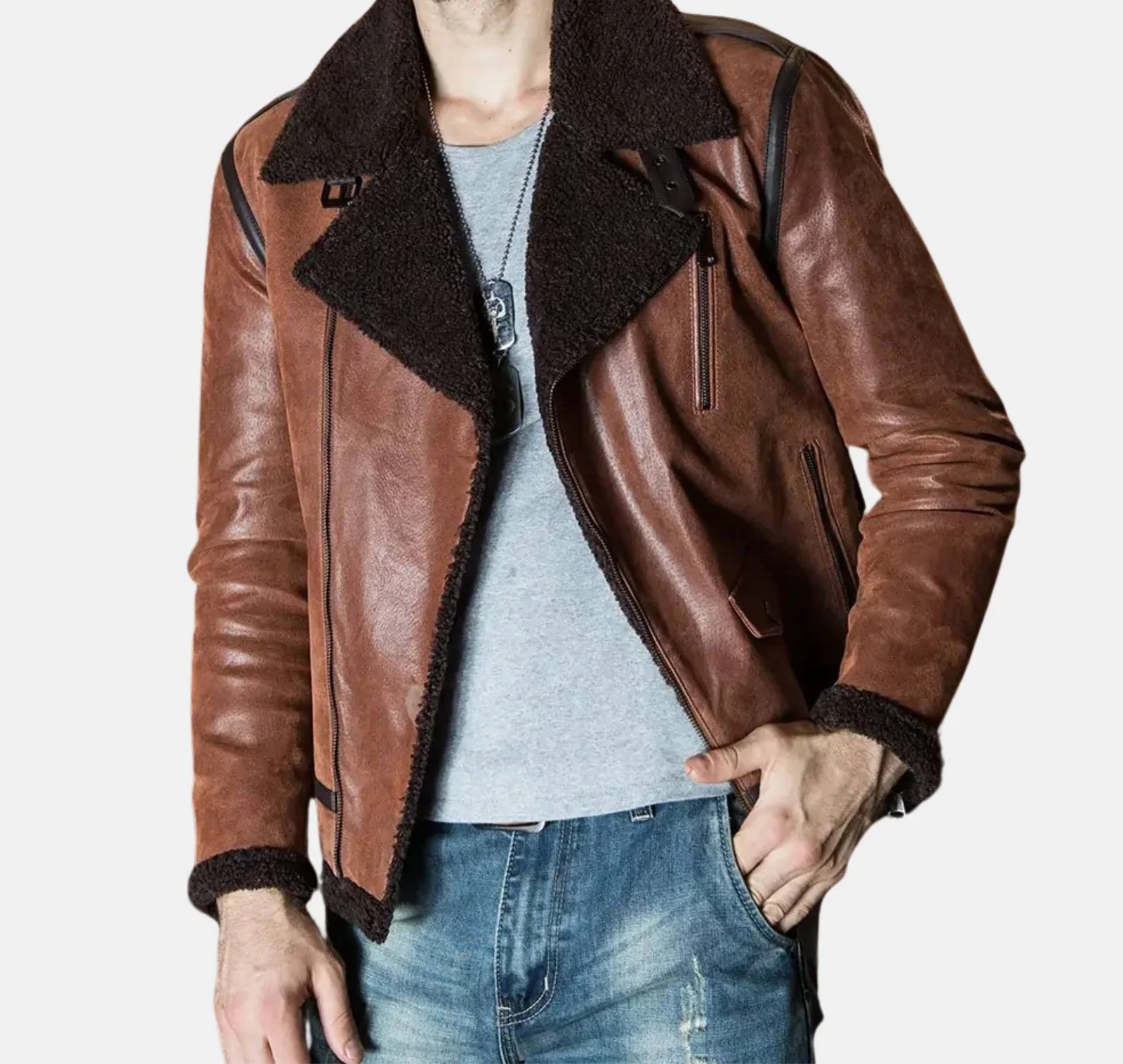 This Falcon Brown Real Shearling Sheepskin Jacket combines style and function. Pair jeans with a T-shirt or sweater for a stylish look; For semi-formal occasions, pair it with chinos and a button-up shirt. It works well with regular shoes or boots, making it versatile for everyday wear, motorcycle riding, or putting over hoodies and sweaters in cooler weather Use a fabric a cold wash, use leather worksheets, and store in a cool place out of direct sunlight and quality.