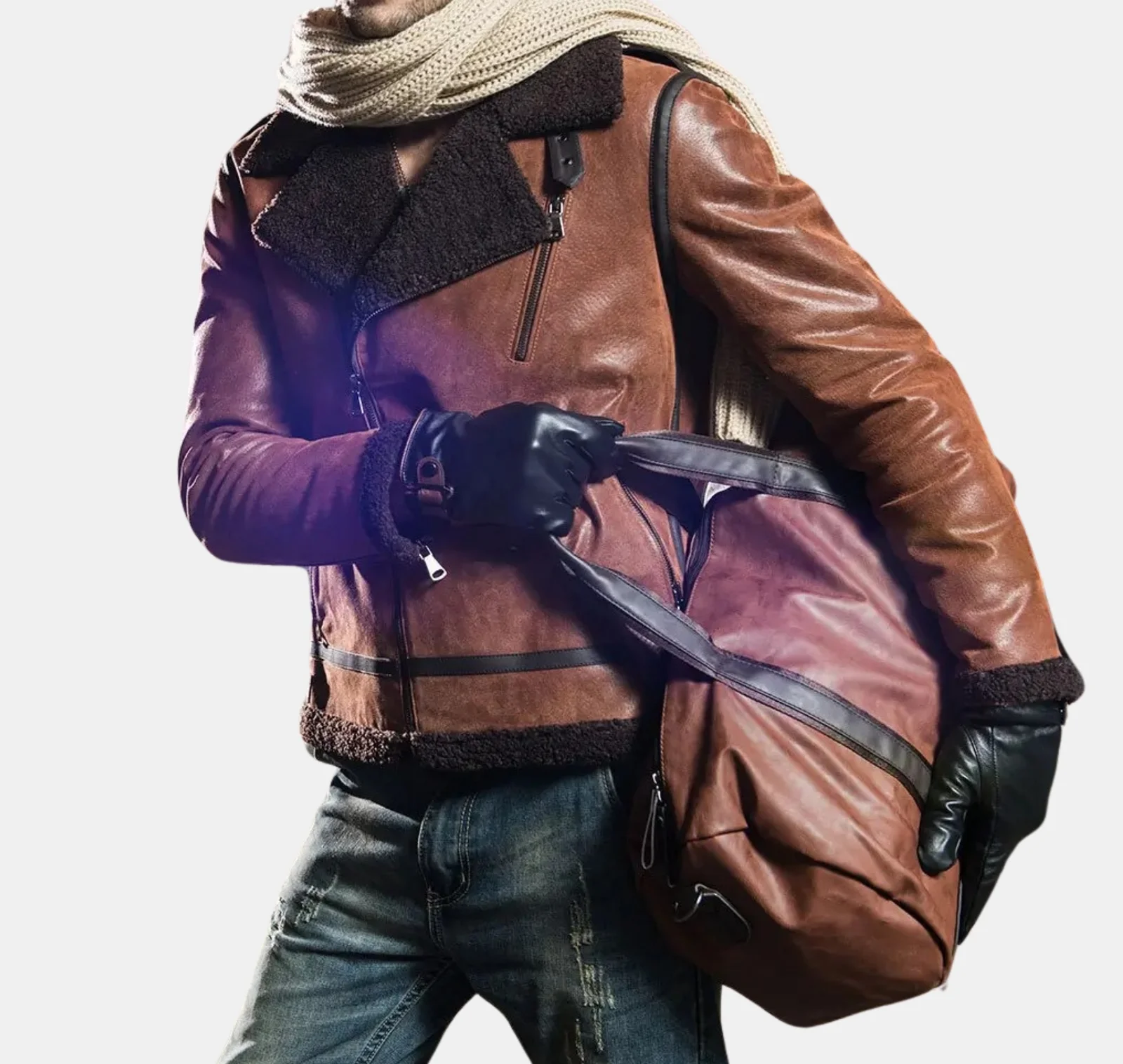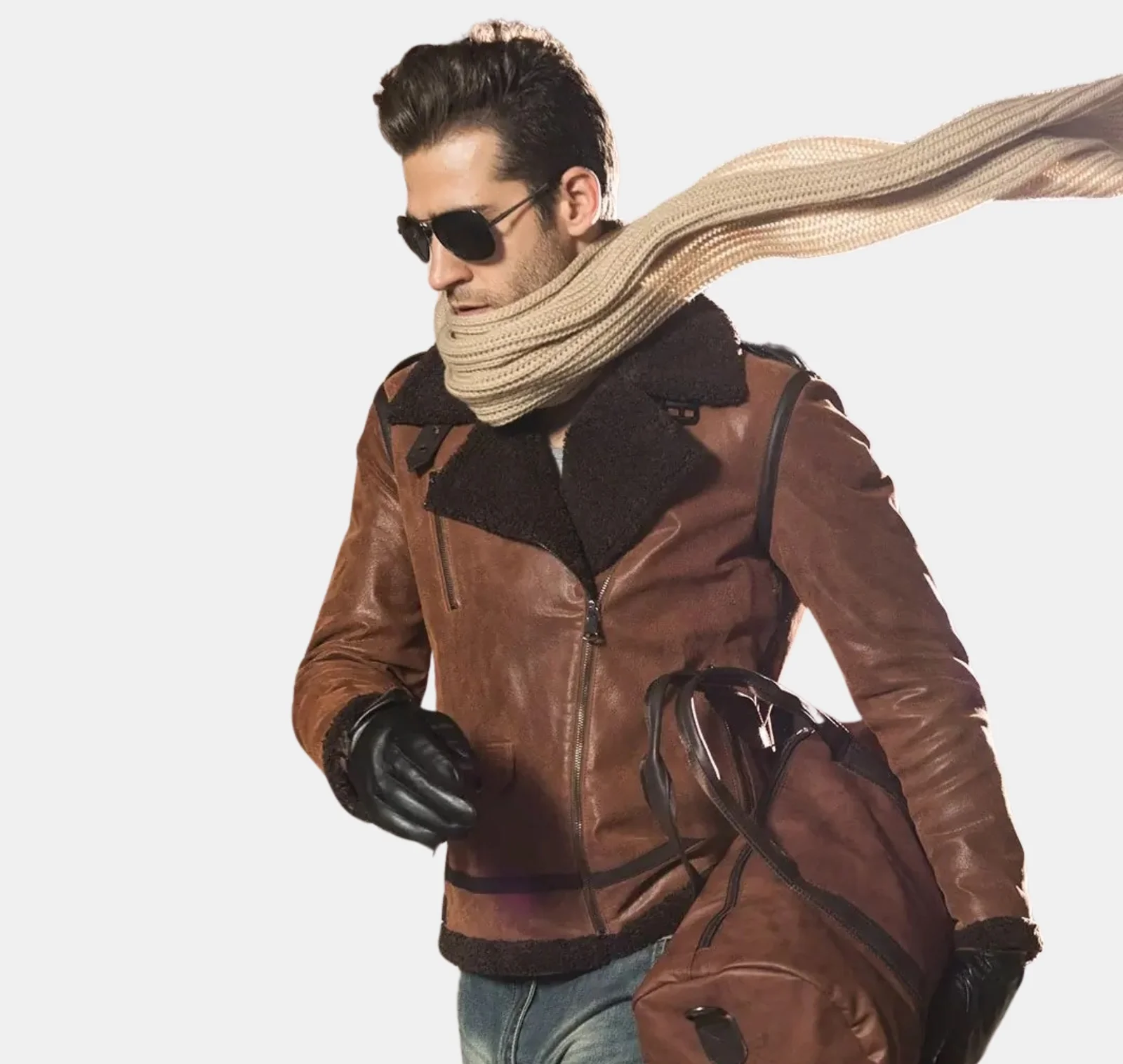 The Falcon Brown Real Shearling Sheepskin Jacket is perfect for fashion-forward men. Made from real leather with a luxurious interior, this is an irresistible winter staple. Pair it with a fireplace with music, a coffee cafe, or a pair of medium or ripped jeans to elevate your style. The fur collar and excellent sleeves make it a versatile fashion statement, while its sleek design and multiple pockets add practicality.