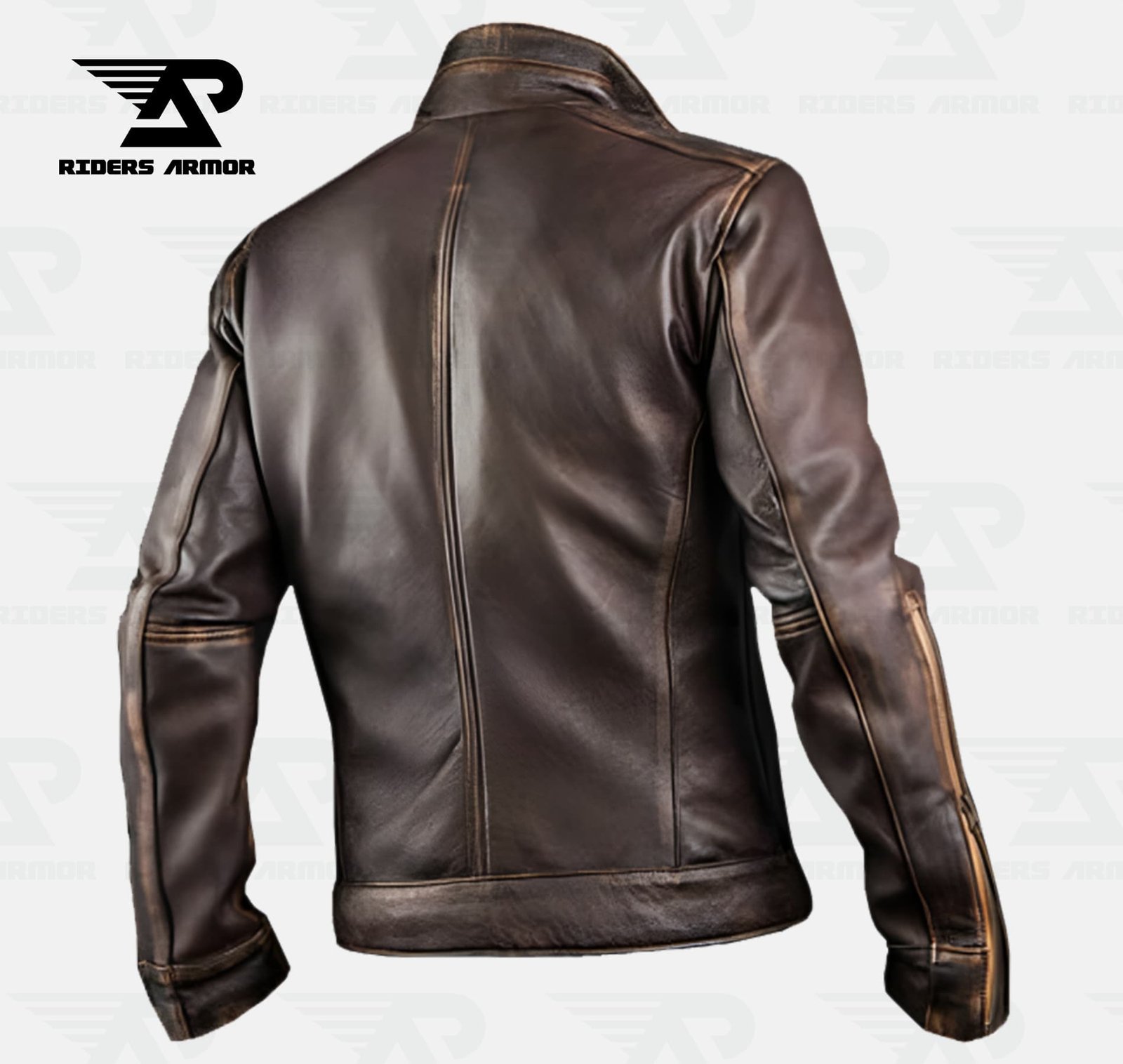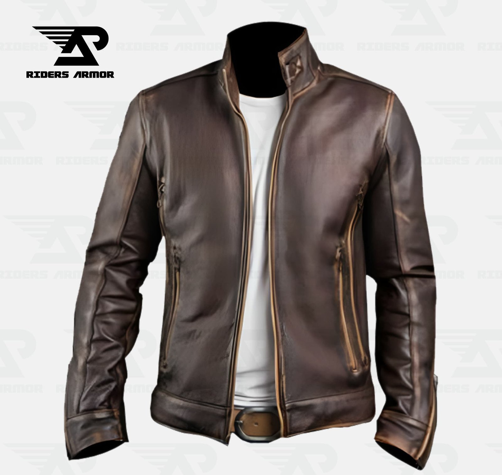 The RustRider Distressed Brown Cafe Racer Jacket isn’t just something you wear, it’s something you own. It’s the kind of jacket that feels like it’s been with you through good stories and long rides, even when it’s brand new. Made from 100% real leather, this jacket has that rich, vintage brown look that never goes out of style. The leather is soft, strong, and built to last just like the memories you’ll make while wearing it. The fit is customized to your shape. Not too tight. Not too loose. Just enough to keep you looking sharp whether you’re riding through the city or grabbing coffee with friends.